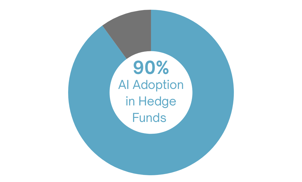 Hedge fund technology has evolved, embedding practical AI into systems, so it’s native and specific to the investment landscape. AI adoption has been rising, with 90% of hedge funds using it to manage investments and optimize portfolios.